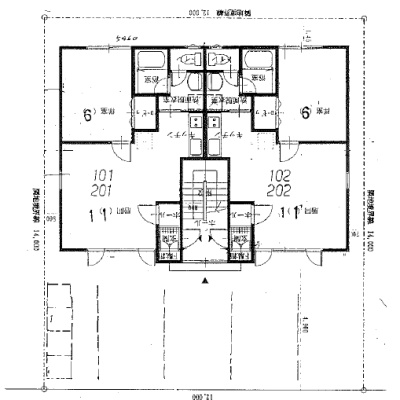 建物の階建 地上2階建 間取り 1LDK×4戸 駐車場 あり ※無料 駐車場台数:4台接道状況 一方 - 東側幅6.00mの公道に12.00m接道