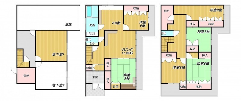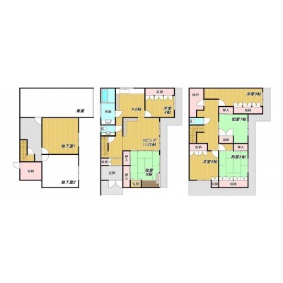 | 間取り | 6LDK2階:L11.25帖 K8帖 洋室6帖 和室8帖 / 3階:洋室9帖 洋室8帖 和室8帖 |