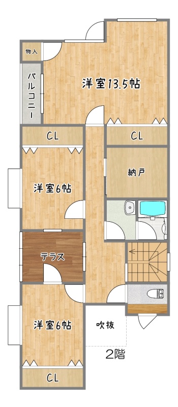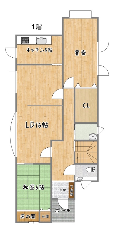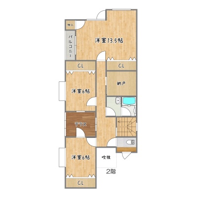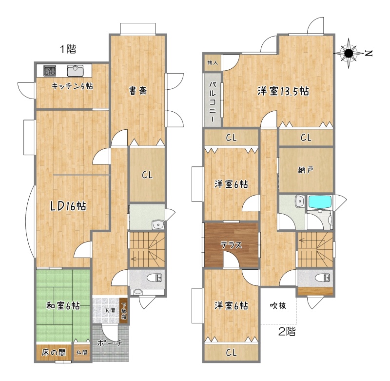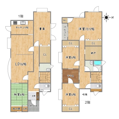 | 間取り | 5LDK1階:LD16帖 K5帖 和室6帖 その他9帖 / 2階:洋室13.5帖 洋室6帖 洋室6帖 |