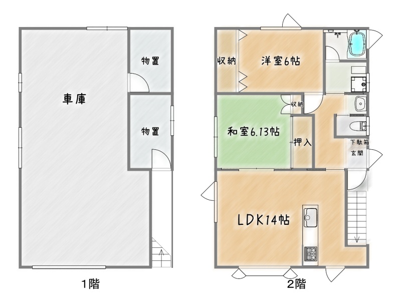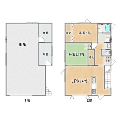 | 間取り | 2LDK2階:LDK14帖 和室6帖 洋室6帖 |