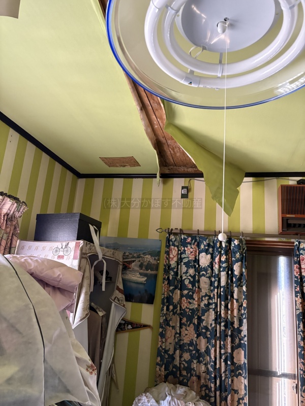 2階天井に雨漏りによる劣化あり
