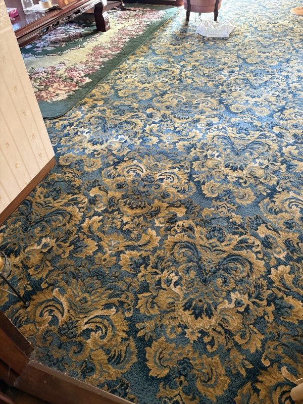 1階リビング床は湿気による劣化でカーペット下は腐食が伺え、フカフカしている