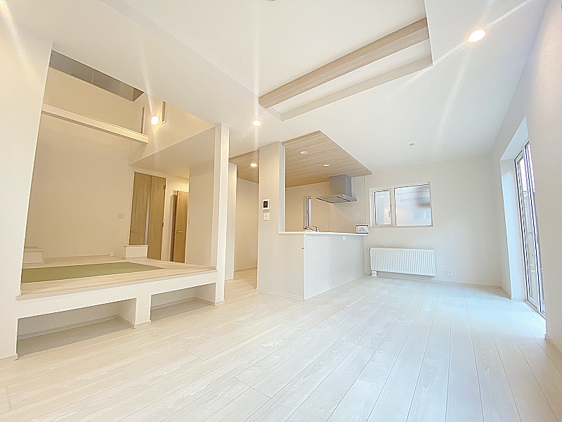 ここに注目!千歳市花園町3丁目に誕生した、上質なデザインと高度な機能性を兼ね備えた3LDK新築住宅です。 駐車3台可能のゆとりある敷地に、暮らしを豊かにする多彩な空間設計が魅力的に広がります。 マルチスキップは、小上がりとしてのくつろぎや、ワークスペースとしての集中環境など、用途に合わせて自在に使える柔軟性の高い空間。日常に心地よさと便利さをもたらしてくれます。また、2.5帖のフリースペースは、書斎・趣味・収納など多彩なニーズに応える価値の高いスペースで、暮らしの幅をより一層広げます。リビングには吹き抜けから自然光が降り注ぎ、折上天井が奥行きと開放感を演出。上質で落ち着いた住空間を形成します。収納面も充実しており、2つのウォークインクローゼットや土間収納が、生活空間をすっきりと美しく保ちます。 キッチンには食器洗浄乾燥機を備え、家事効率をサポート。2階にもトイレを配置することで、毎日の使い勝手を高めています。 都市ガスecoジョーズ採用で経済的負担も軽減。デザイン・機能性・快適性を高いレベルで融合させた、永く愛される住まいです。