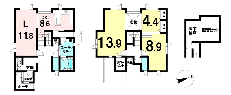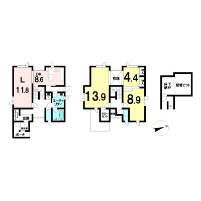| 間取り | 2LDK1階:LDK20.4帖 / 2階:洋室13.9帖 洋室8.9帖 洋室4.4帖 |