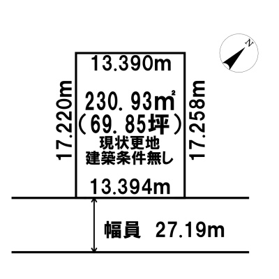 総区画数-/- 接道状況 一方 - 南東側幅27.10mの公道に13.39m接道 位置指定:無