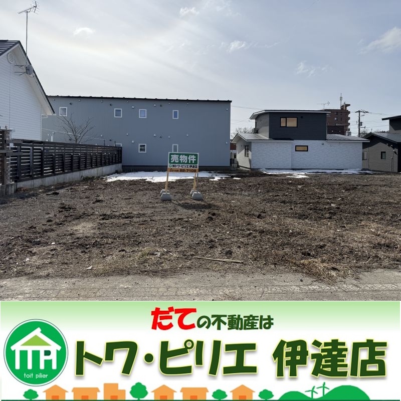 ここに注目!伊達市末永町に広々とした250.54m?の整形地平坦地のご紹介です。 周辺環境も魅力たっぷり。徒歩2分にコンビニ、徒歩6分にはスーパー「イオン伊達店」があり、毎日のお買い物に困ることはありません。お子様の通学も、伊達西小学校まで徒歩5分、光陵中学校まで徒歩12分と安心の距離。総合病院も徒歩8分圏内にあり、もしもの時も心強いですね。建築条件なし! 上下水道や電気、プロパンガスといった生活インフラも整備されており、スムーズに新生活をスタートしていただけます。閑静な住宅街で、ゆったりとした暮らしを始めてみませんか?お問い合わせをお待ちしております。 ※土地の面積・地番は予定となっております。 お問い合わせは㈱トワ・ピリエ伊達店 お電話 0142-82-7108 メール:towapirie-date@itg.bcj.ne.jp ご来店:伊達市梅本町6番地45までお気軽にどうぞ!!