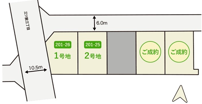 総区画数2区画/全5区画 接道状況 二方(除角地) - 北側幅6.00mの道に接道