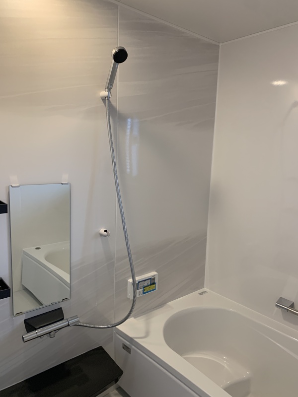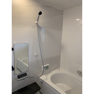 白を基調とした清潔感のある浴室。