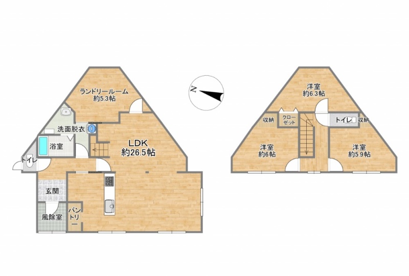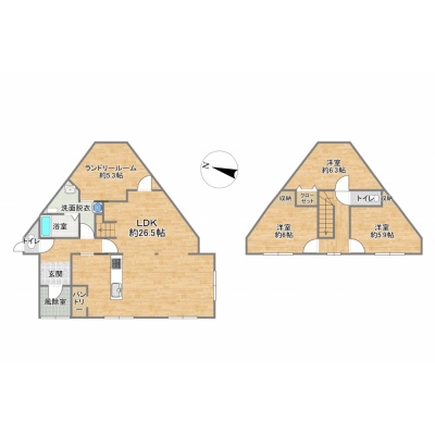 | 間取り | 3SLDKLDK26.5帖 S5.3帖 洋室6.3帖 洋室6帖 洋室5.9帖 |