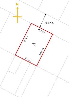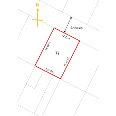 総区画数-/- 接道状況 一方 - 北東側幅8.00mの公道に12.72m接道