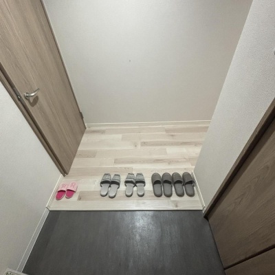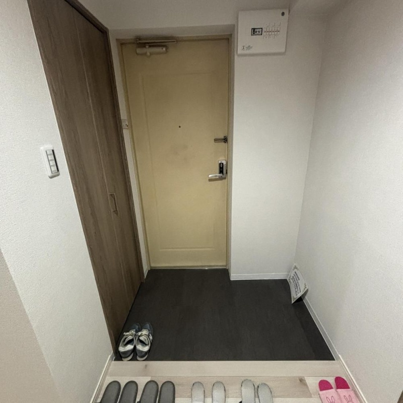 部屋側から見た玄関。左側にシューズボックス