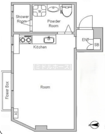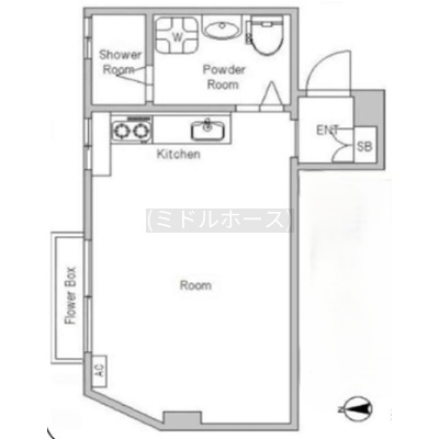 ワンルーム(18.66m²)└ 1階:洋室