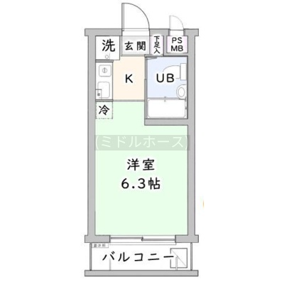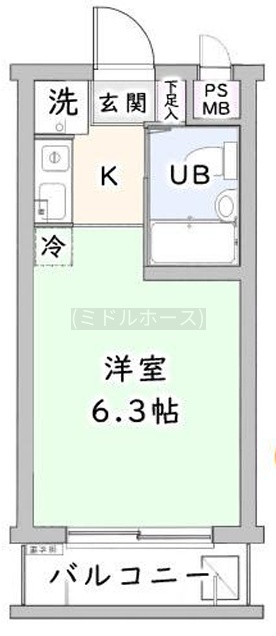 ワンルーム(16.53m²)└ 2階:洋室6.3帖