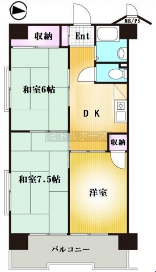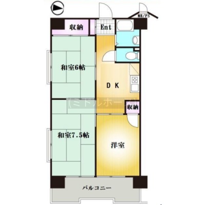 3DK(46.92m²)└ 2階:DK 洋室 和室6帖 和室7.5帖