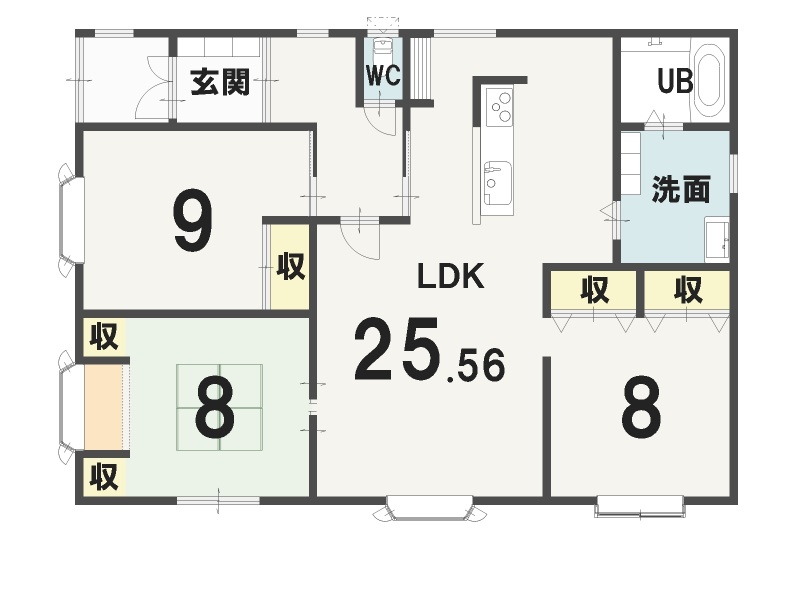 | 間取り | 3LDK1階:LDK25.56帖 洋室9帖 洋室8帖 和室8帖 |