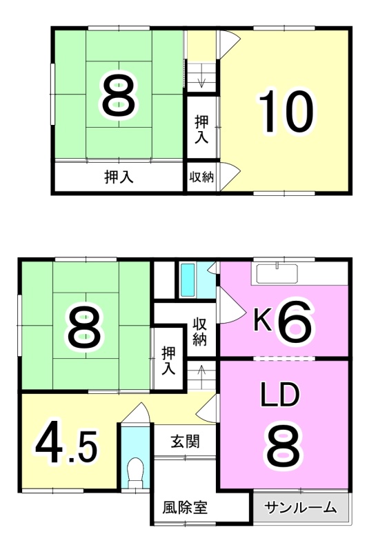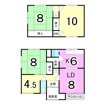 | 間取り | 3LDK1階:LD6帖 K6帖 和室8帖 / 2階:洋室10帖 和室8帖 |