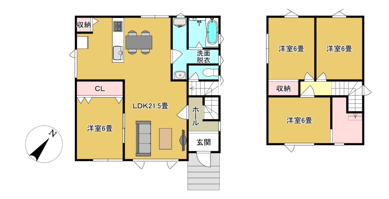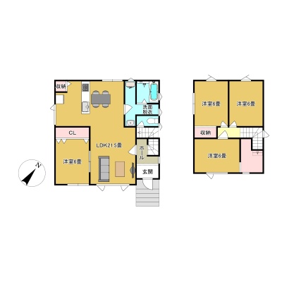 | 間取り | 4LDK1階:LDK21.5帖 洋室6帖 / 2階:洋室6帖 洋室6帖 洋室6帖 |