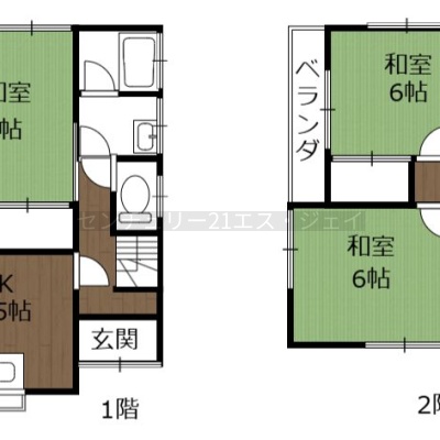 建物の階建 構造 木造 間取り 3DK1階:和室6帖 / 2階:和室6帖 和室6帖 駐車場 なしバルコニー あり接道状況 一方 都市計画区域 市街化区域 用途地域 - 第1種低層住居専用地域(建ぺい率:50% / 容積率:100%)