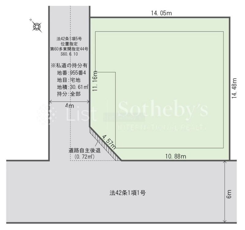 建物の階建 地上3階建 間取り その他 駐車場 接道状況 - 接道1:公道、南西、幅員6.0m 接道2:私道、北西、幅員4.0m