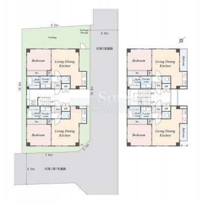 建物の階建 地上3階建 間取り その他 駐車場 接道状況 - 接道1:公道、南東、幅員4.0m 接道2:公道、北東、幅員4.0m