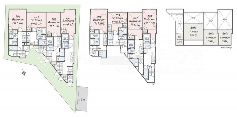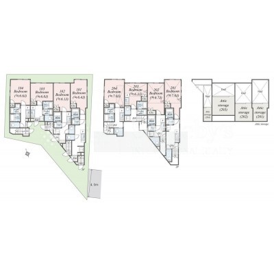 | 面積 | 建物:195.75m² (59.21坪)/ 土地:159.6m² (48.27坪)(公簿) 専有:最小19.52m² (5.9坪)~最大29.08m² (8.79坪) |