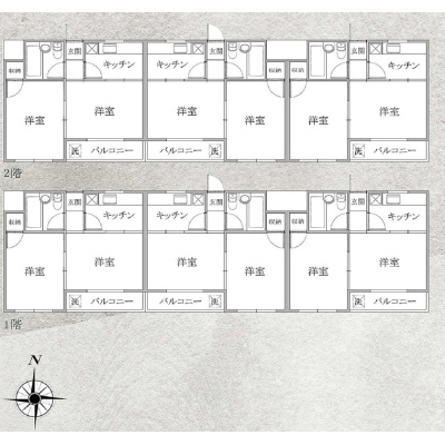 建物の階建 地上2階建 間取り 2K×6戸 駐車場 なし接道状況 都市計画区域 用途地域 - 第1種住居地域(建ぺい率:60% / 容積率:200%)