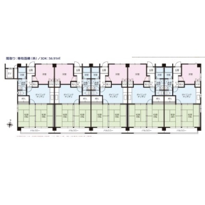 | 面積 | 建物:1747.84m² (528.72坪)/ 土地:1059.8m² (320.58坪)(公簿)※セットバックが必要(1.63m²) 専有:最小54.04m² (16.34坪)~最大64m² (19.36坪) |