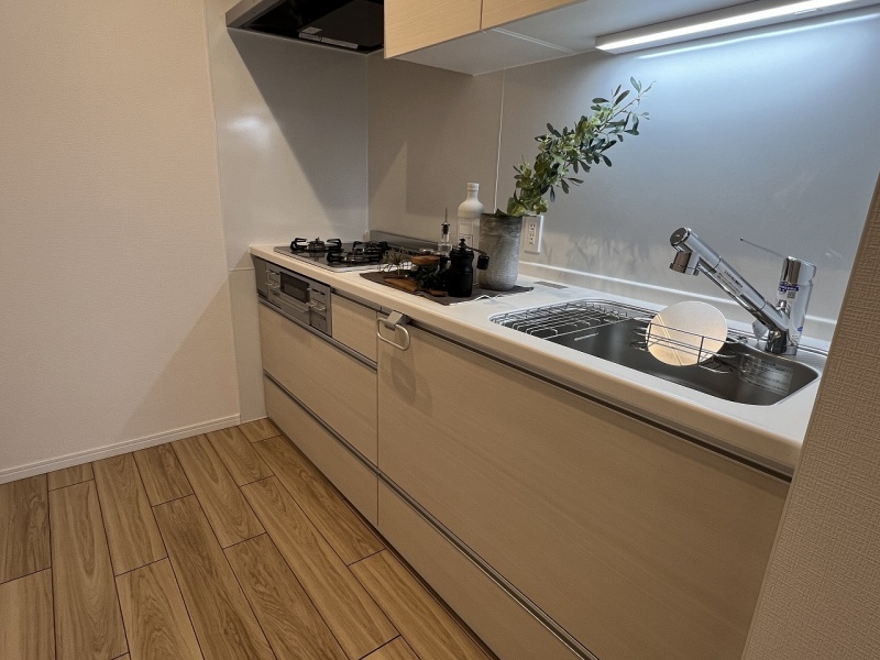 効率的な動線と収納豊富なシステムキッチンで、毎日の料理が快適に行えます。