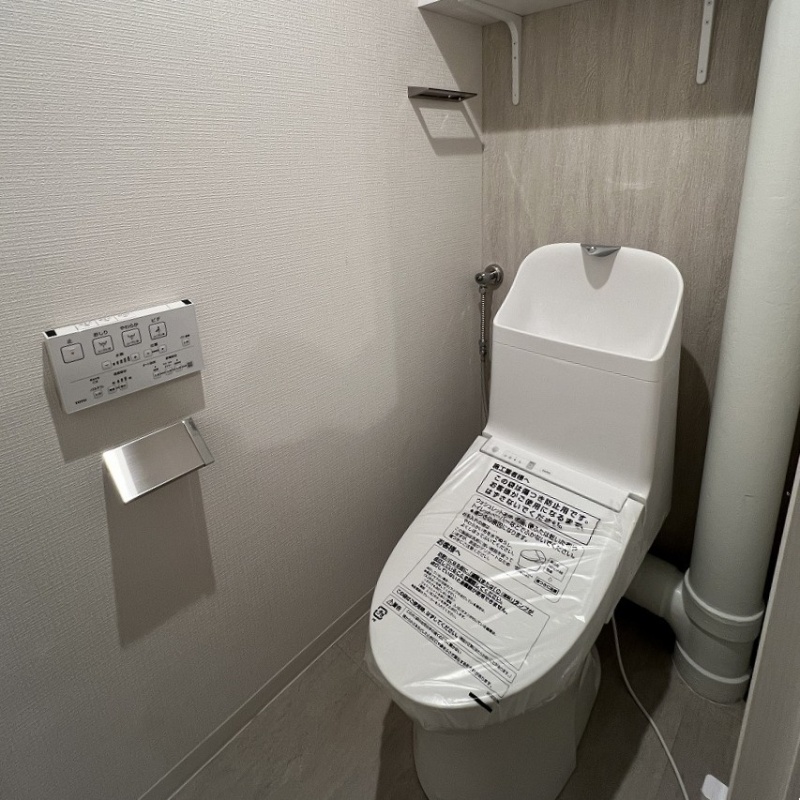 温水洗浄便座付きのトイレで快適。清潔感ある空間で毎日の使用も安心です。