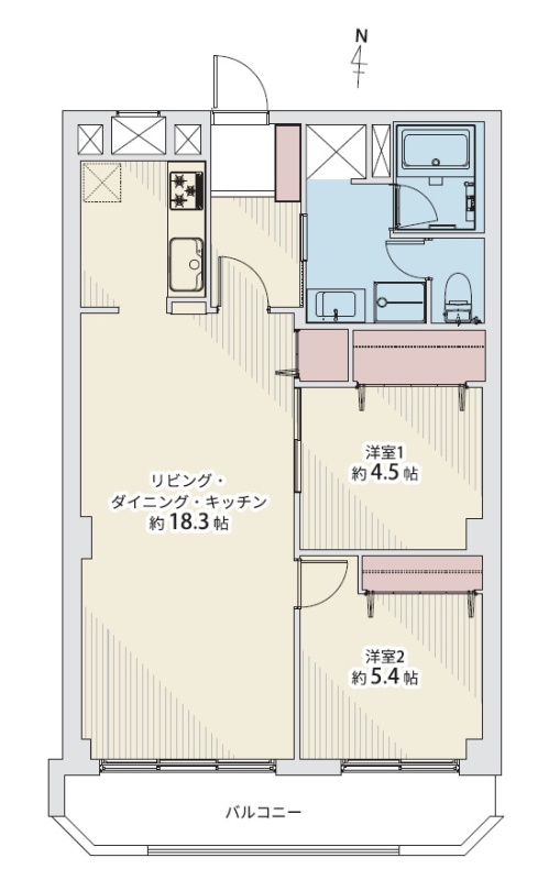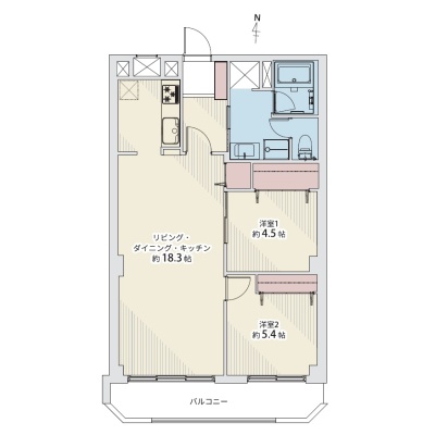 2LDK(64.69m²)└ 3階:洋室4.5帖 洋室5.4帖 LDK18.3帖
