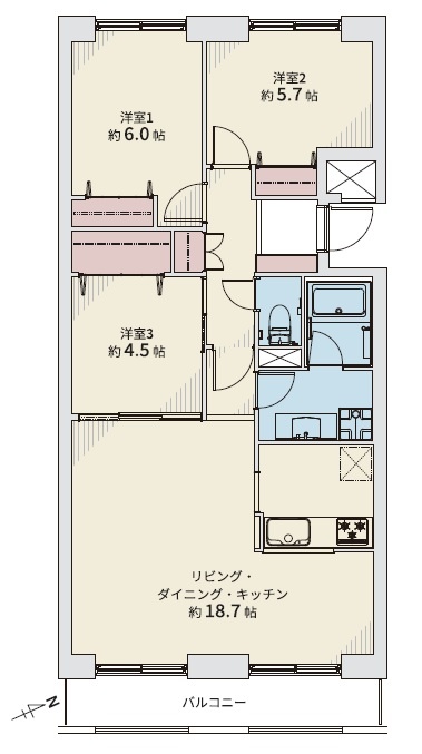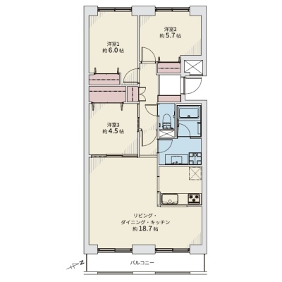 3LDK(74.33m²)└ 8階:LDK18.7帖 洋室6帖 洋室5.7帖 洋室4.5帖