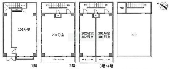 建物の階建 地上4階建 間取り 駐車場 接道状況 - 南西側幅3.80mの公道に接道