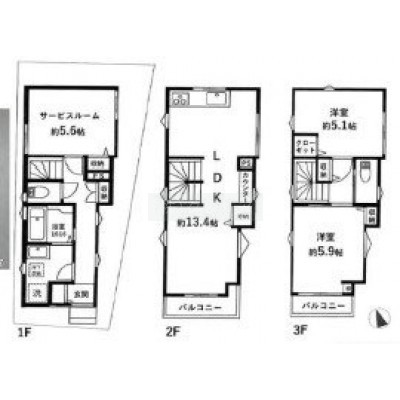 | 面積 | 建物:77.16m² (23.34坪)/ 土地:45.55m² (13.77坪) 専有:77.16m² (23.34坪) |
