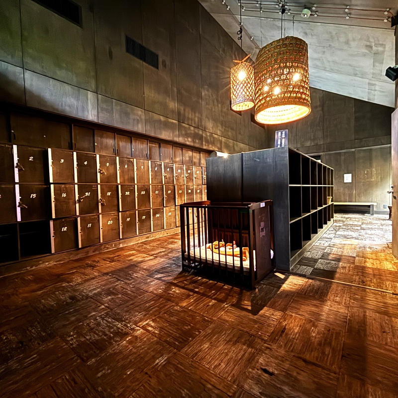脱衣所もコンクリートと木造の造りとなっている。